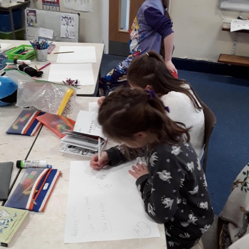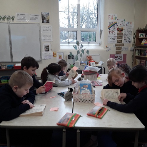 We launched The National Year of Reading this January with a fun book tasting cafe in our library area. Tables were set with new genres for the pupils to taste and have a try. The genres included: nature non-fiction, wordless books, emotional stories, magazines, newspapers and history non-fiction. Pupils planned new genres and titles they would like to read this year. The Juniors have designed posters to promote the year of reading with positive messages.