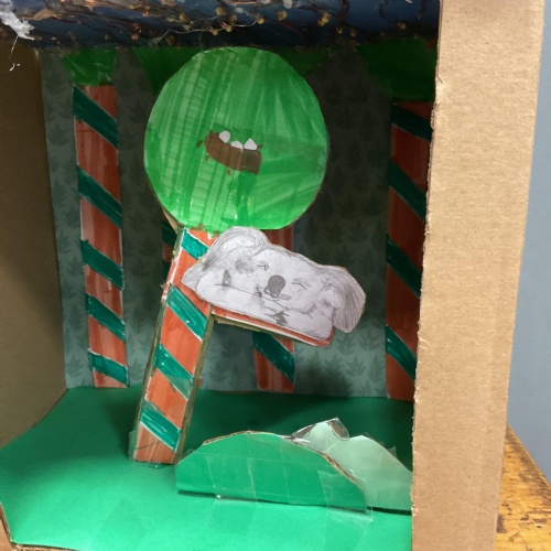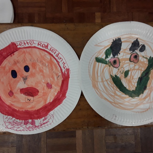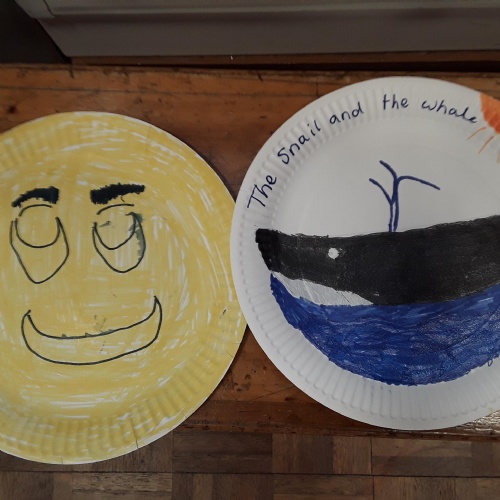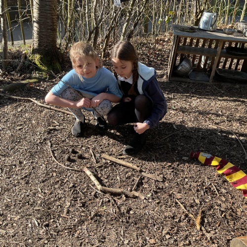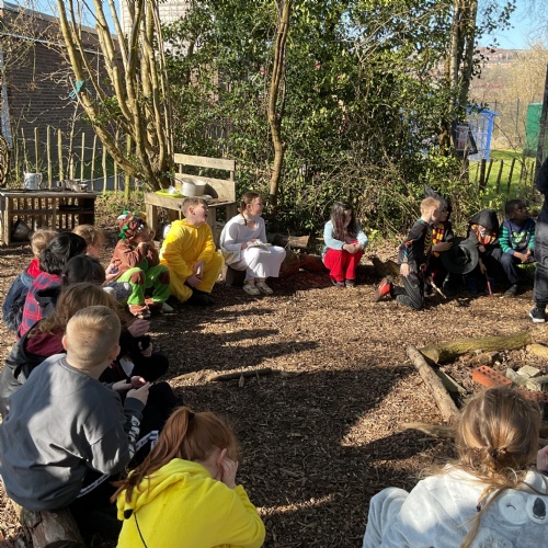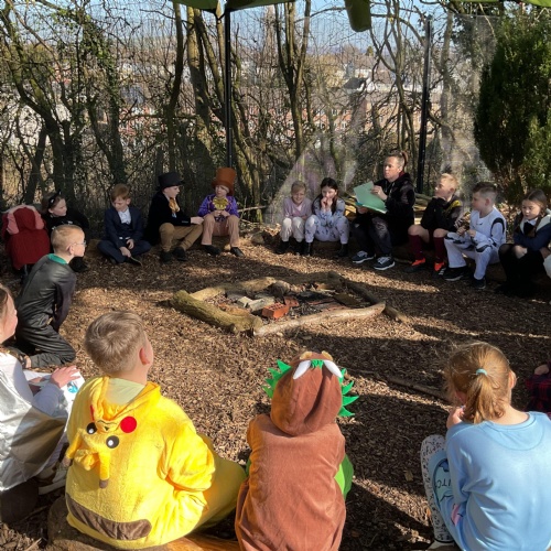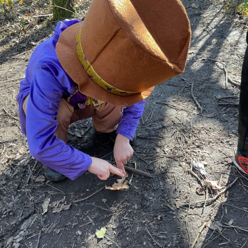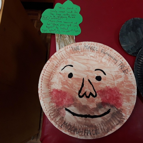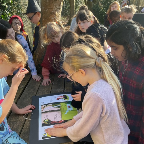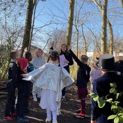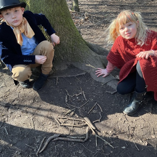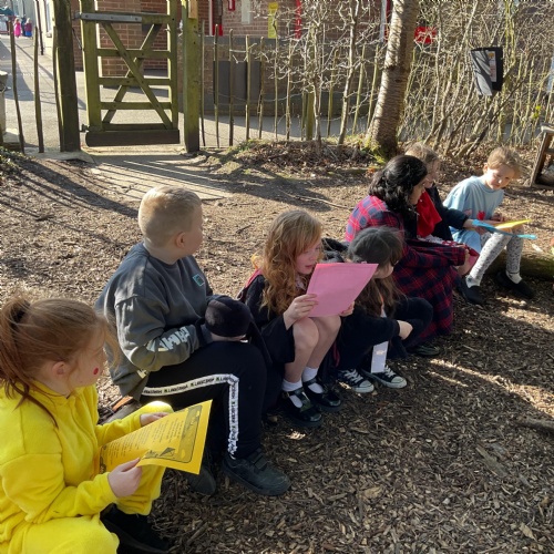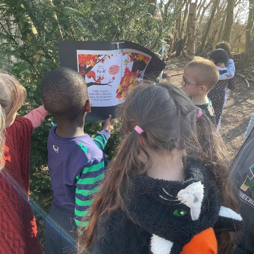 Each class took a turn following a book trail in the woodland area. It was a beautiful sunny and breezy day which was perfect for our tale about the wind, The Leaf Thief. Throughout the trail the children had various challenges to complete. These included: spotting evergreen and deciduous trees, mindfulness exercises, reading poetry about the wind and creating pictures of the squirrel and bird from the story.