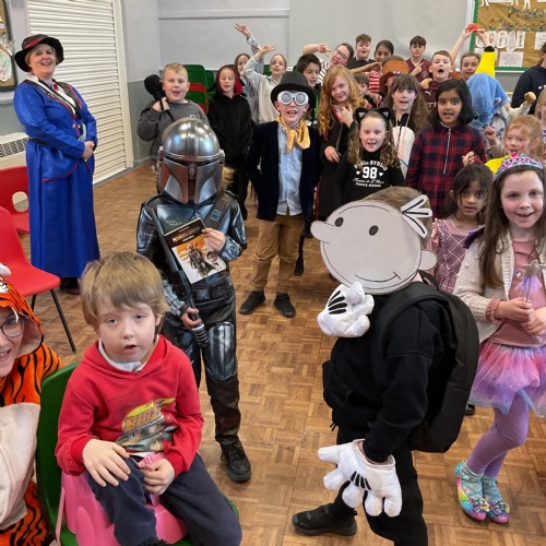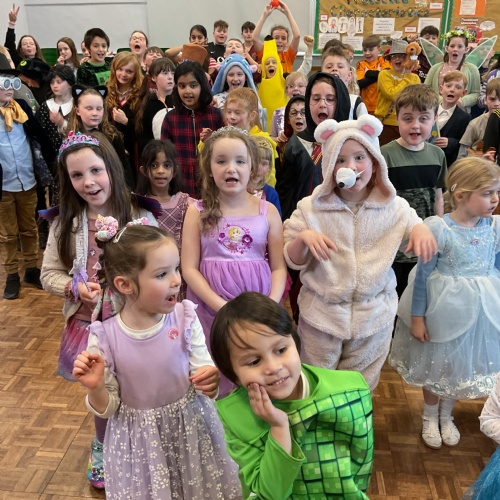 Throughout the day classes and peers read together. Key Stage 2 created 'Reading Rivers' which show their favourite reading experiences throughout their lives so far. We ended the day with a whole school assembly in which each class did a parade of their costumes and the other children spotted all the book characters who had come to school that day!