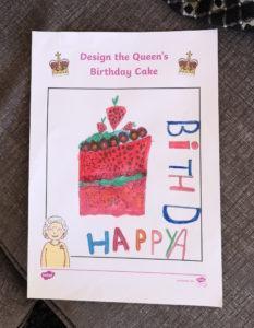 Maisie has been busy designing a birthday cake (and card) for the queen.