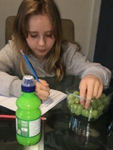 Levina has been working hard at home, fuelled by grapes to keep her going!