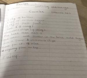 Scarlett has written down the recipe for cookies and then followed it to make them. She has also been working with her younger brother to make this delicious looking banana bread. Well done!