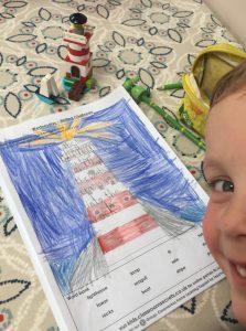 Nathan has drawn a fantastic lighthouse and used the word bank to help write his shape poem. We has even created a model of a lighthouse using Lego. Good job!